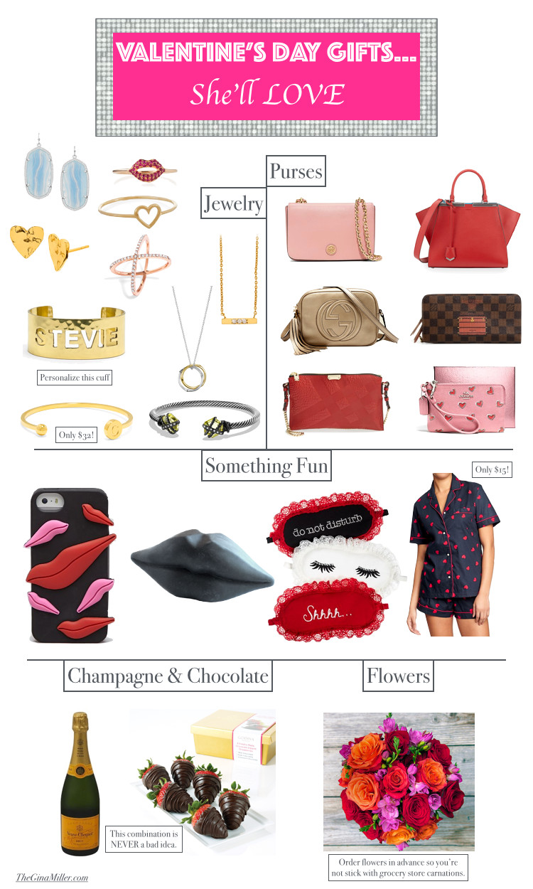 Purses and jewelry are great gifts. Most women go crazy over a new purse. They go even crazier over a designer one. Think Louis Vuitton, Prada, Gucci, Tory Burch (a relatively affordable designer brand). You can't go wrong.